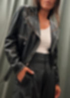 Gorgeous crop black leather asymmetric zip moto style jacket with metallic embroidery, rhinestones and custom bead work.